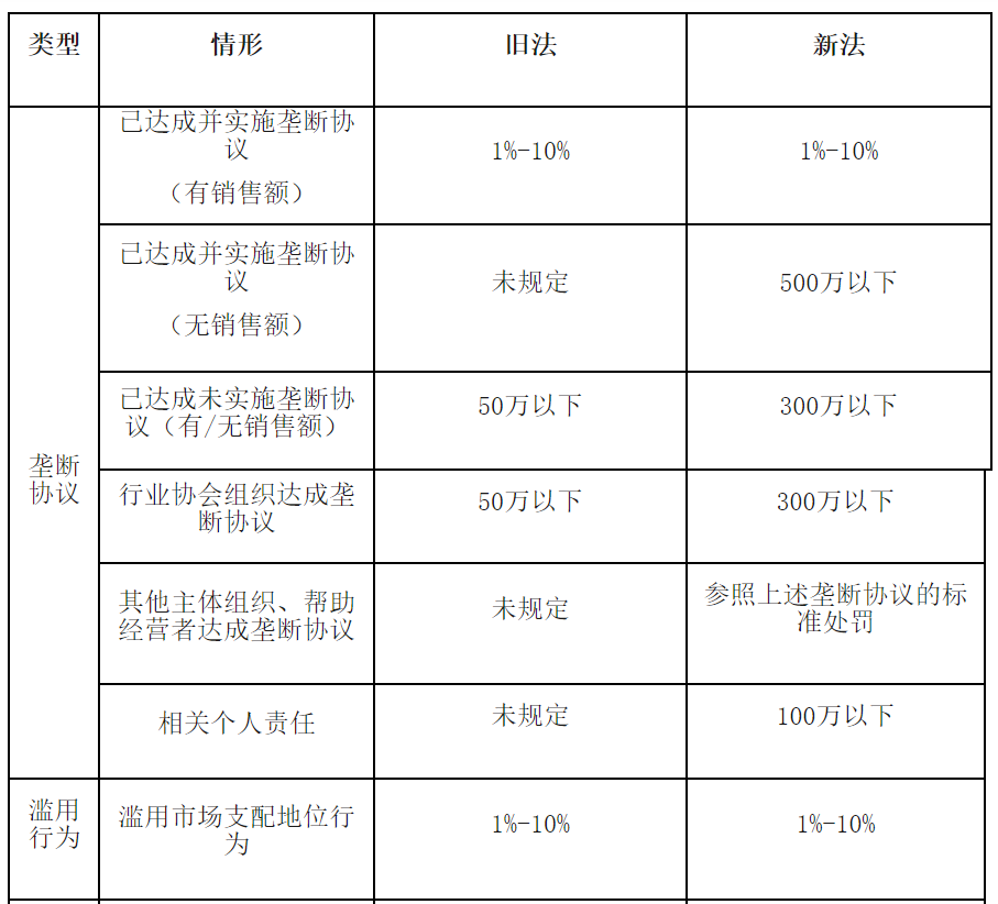 《新法》大幅提高了對相關(guān)違法行為的罰款數(shù)額,并對壟斷行為實行“雙罰制”,即不僅處罰單位,而且處罰相關(guān)負(fù)責(zé)人,同時增加失信懲戒、刑事責(zé)任等更多違法處罰責(zé)任形式。