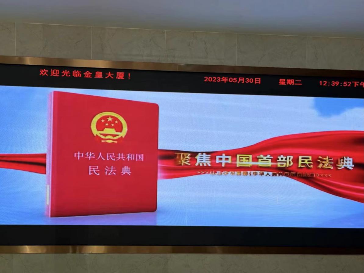 控股公司利用公司網(wǎng)站發(fā)布解讀民法典專題文章,利用LED電子顯示屏滾動播放宣傳海報及宣傳片;發(fā)放民法典宣傳手冊,對網(wǎng)絡虛擬財產(chǎn)、見義勇為、居住權、高空拋物等進行案例和法條普法。