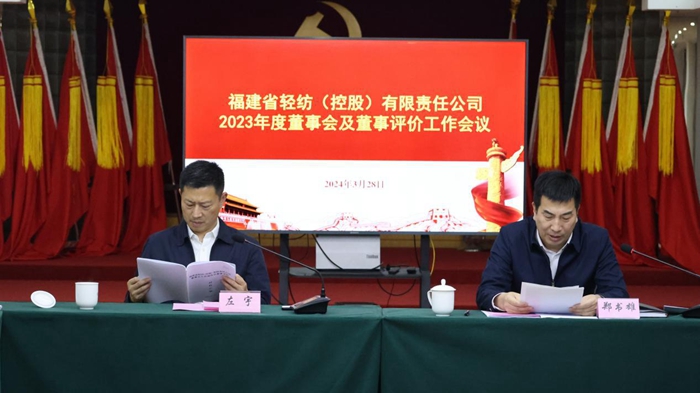 根據(jù)省國資委黨委的統(tǒng)一安排部署,3月28日,福建輕紡召開董事會及董事評價會,省國資委黨委委員、副主任左宇出席會議并講話,省國資委考分處處長林新炎等到會指導(dǎo)。福建輕紡黨委副書記、副董事長、總經(jīng)理鄭書雄主持會議并代表董事會述職,董事會成員出席會議并作個人書面述職。公司在家領(lǐng)導(dǎo)班子成員、董事會秘書和專門委員會辦公室負(fù)責(zé)人列席會議。