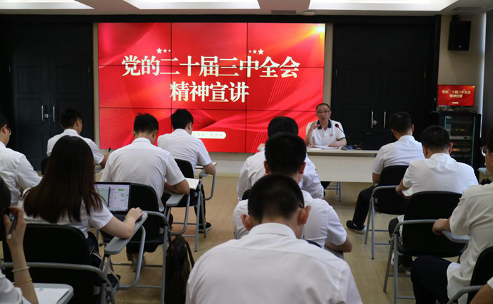 陳國(guó)樑從黨的二十屆三中全會(huì)和省委十一屆六次全會(huì)精神宣貫、個(gè)人心得體會(huì)以及工作貫徹落實(shí)三方面,緊密結(jié)合金皇環(huán)保公司實(shí)際對(duì)黨的二十屆三中全會(huì)精神作了全面系統(tǒng)的宣講闡釋。
