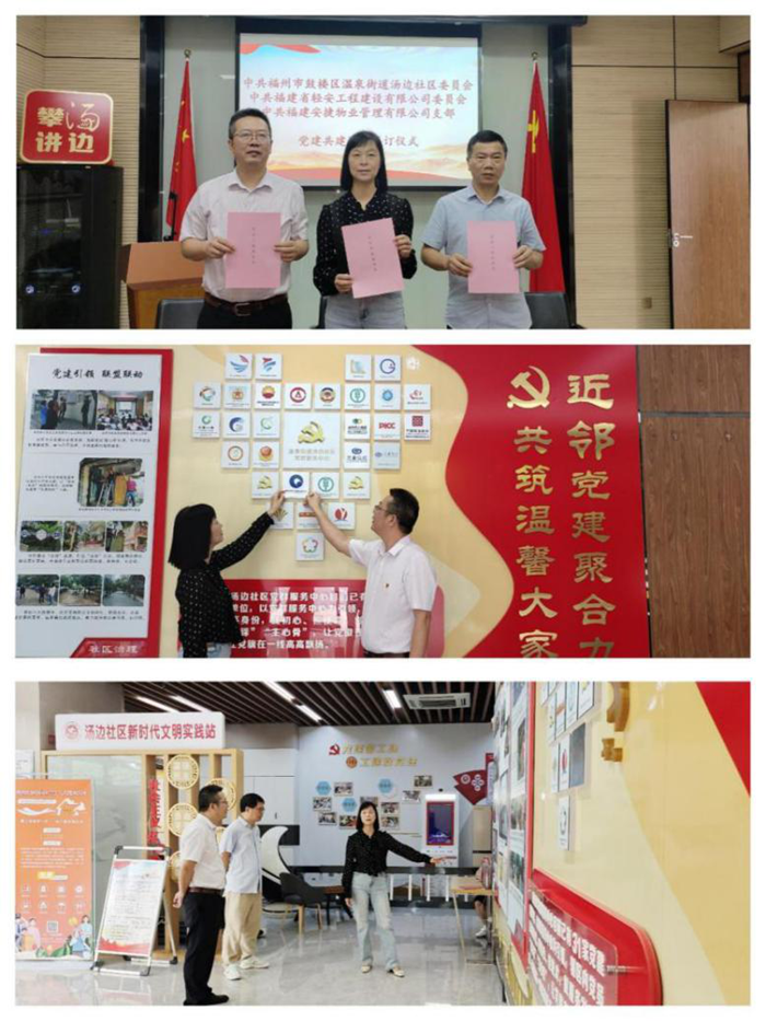 為深入學(xué)習(xí)貫徹習(xí)近平新時(shí)代中國特色社會(huì)主義思想和黨的二十大、黨的二十屆三中全會(huì)精神,切實(shí)推動(dòng)精神文明創(chuàng)建和單位文化建設(shè),構(gòu)建基層黨組織共建、各方黨員參與、共同提升黨建工作水平的新格局,經(jīng)各方黨組織協(xié)商一致,中共福建省輕安工程建設(shè)有限公司委員會(huì)、中共福州市鼓樓區(qū)溫泉街道湯邊社區(qū)委員會(huì)、中共福建安捷物業(yè)管理有限公司支部于2024年9月27日上午在溫泉街道湯邊社區(qū)簽訂三方黨建共建協(xié)議,正式結(jié)成黨建工作聯(lián)盟單位。