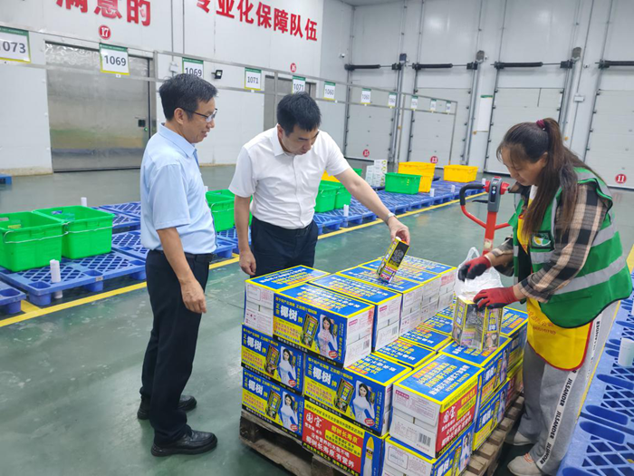 為落實(shí)安全生產(chǎn)、防臺防汛工作要求,有效保障國慶期間副食品供應(yīng)安全,9月30日下午,福建輕紡黨委副書記、副董事長、總經(jīng)理鄭書雄,福建輕紡黨委委員、總會計師鄭劍軍一行赴海峽融合福州公司檢查相關(guān)工作開展情況。