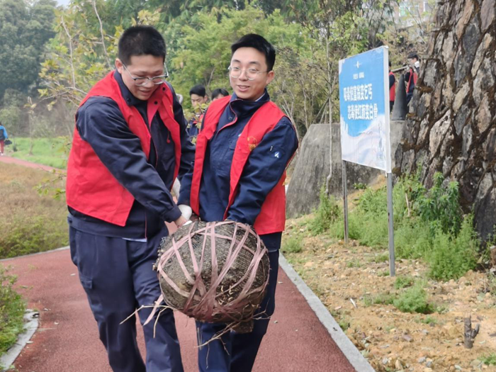 植樹現(xiàn)場,公司領(lǐng)導(dǎo)與干部職工一起揮鍬鏟土、培土夯苗、澆水灌溉,大家熱情高漲,干勁十足,每一道工序都一絲不茍、默契配合。在大家的共同努力下,近40顆櫻花苗在廠區(qū)“安家落戶”,一顆顆新栽植的小樹昂然挺立,煥發(fā)出蓬勃生機(jī)與活力。